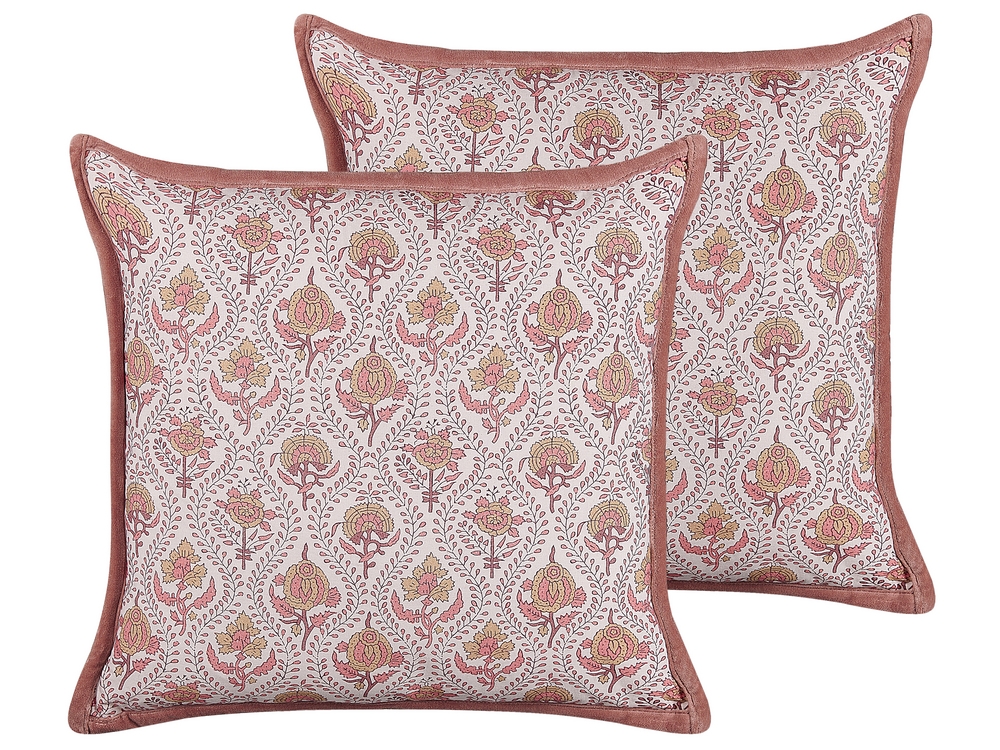 Set of 2 Cotton Cushions Flower Pattern 45 x 45 cm Red and White