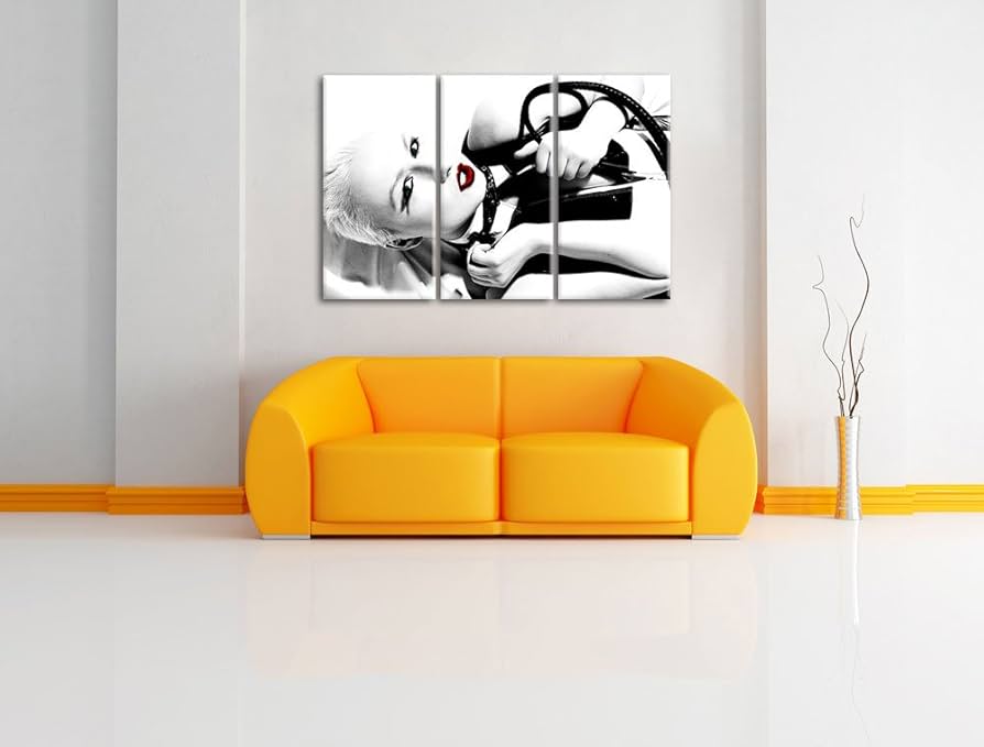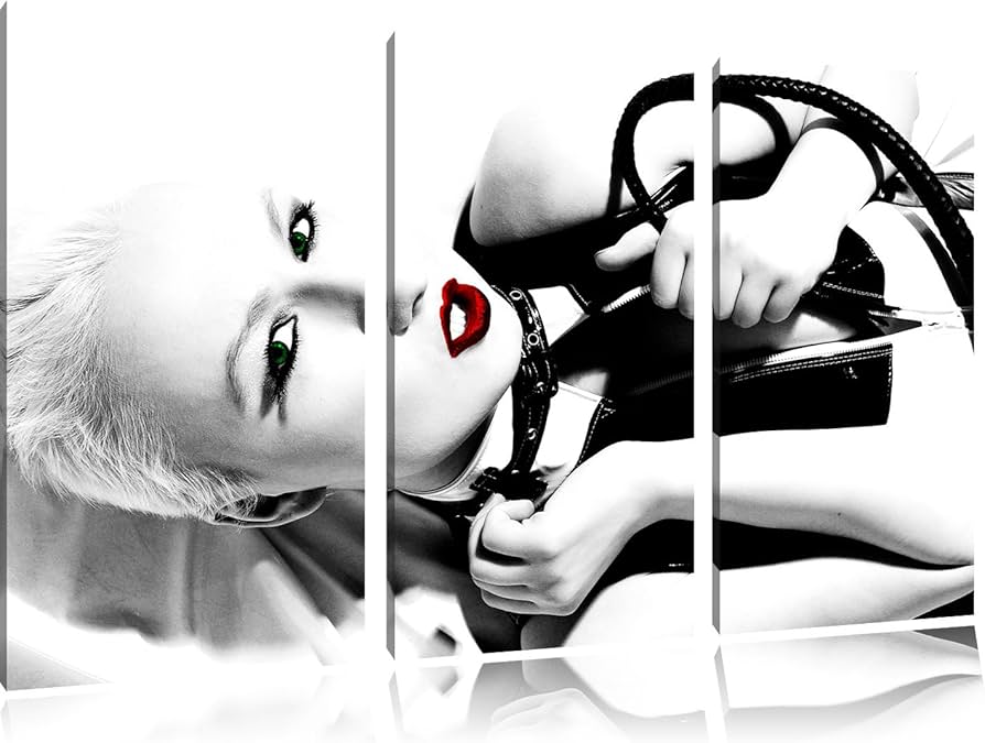 Sinnliche Domina schwarz/weiß 3 Teiler Leinwandbild 120×80 Bild