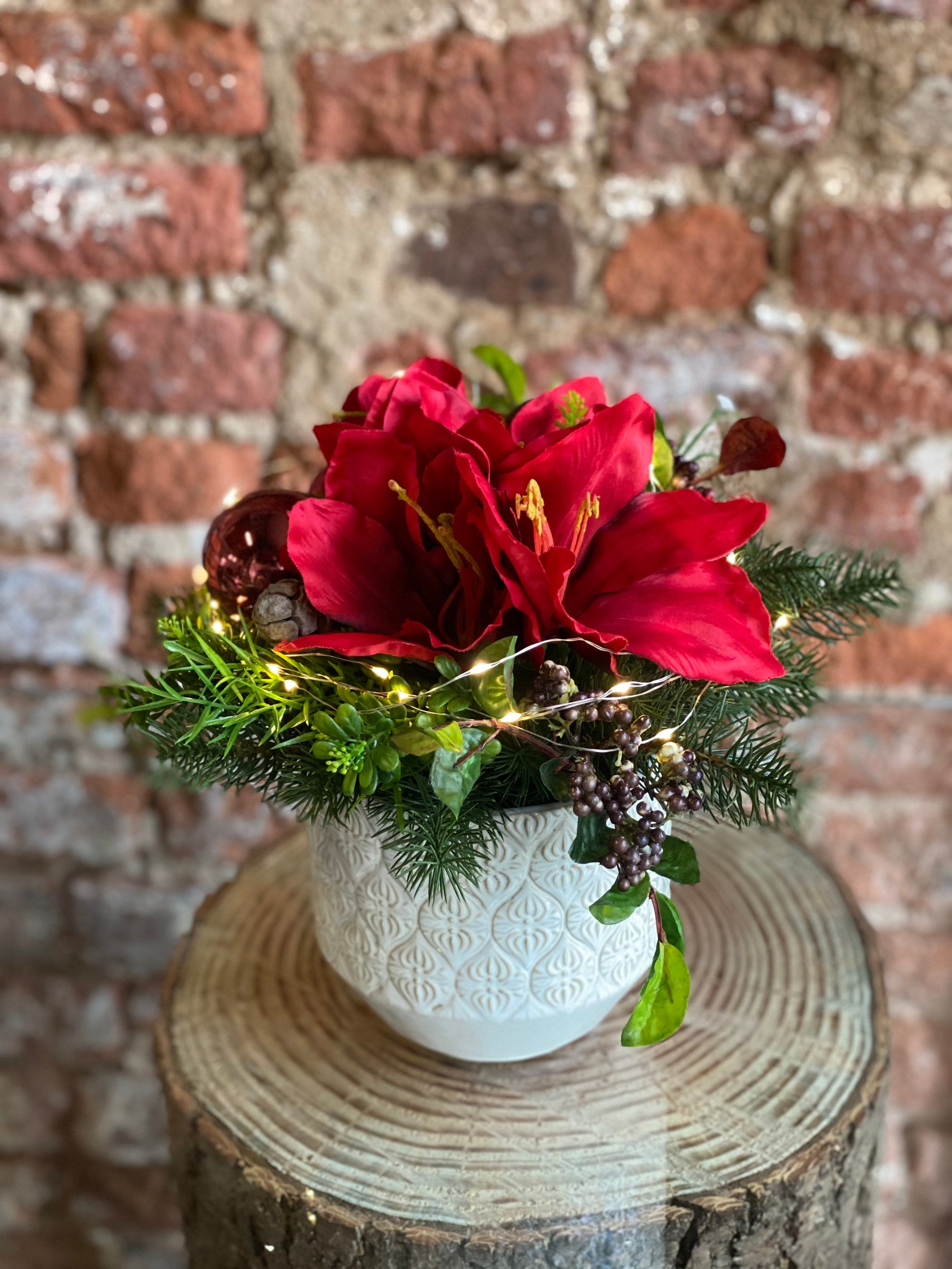 Weihnachtsstrauß Nr. 16 mit weißer Amarillis | HIKO Dekoshop
